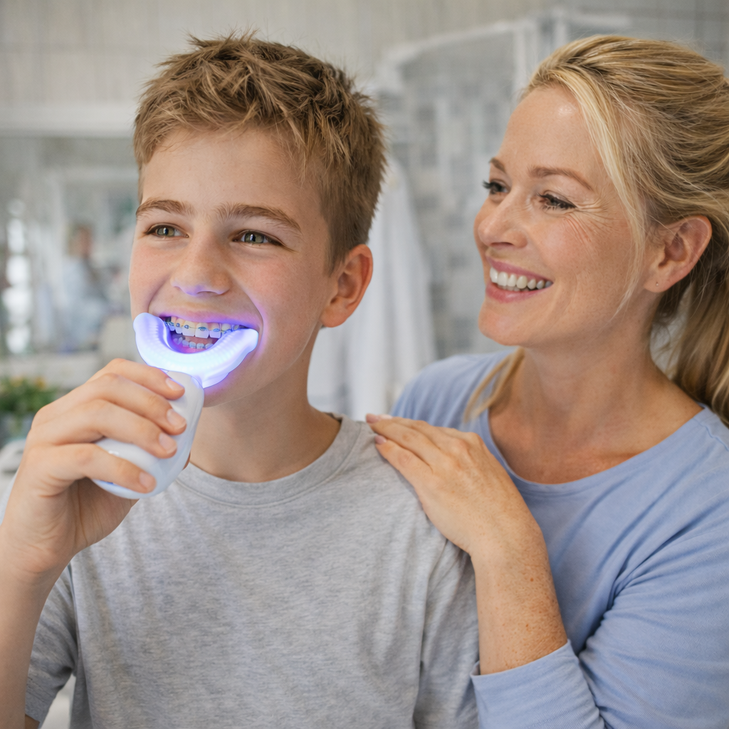 Toen mijn zoon zijn beugel liet verwijderen, was de tandarts verrast — geen tandplak en geen extra reiniging nodig. Poetsen was altijd een strijd, maar dit maakte het zó makkelijk. Ik ben echt blij dat we dit hebben gevonden.