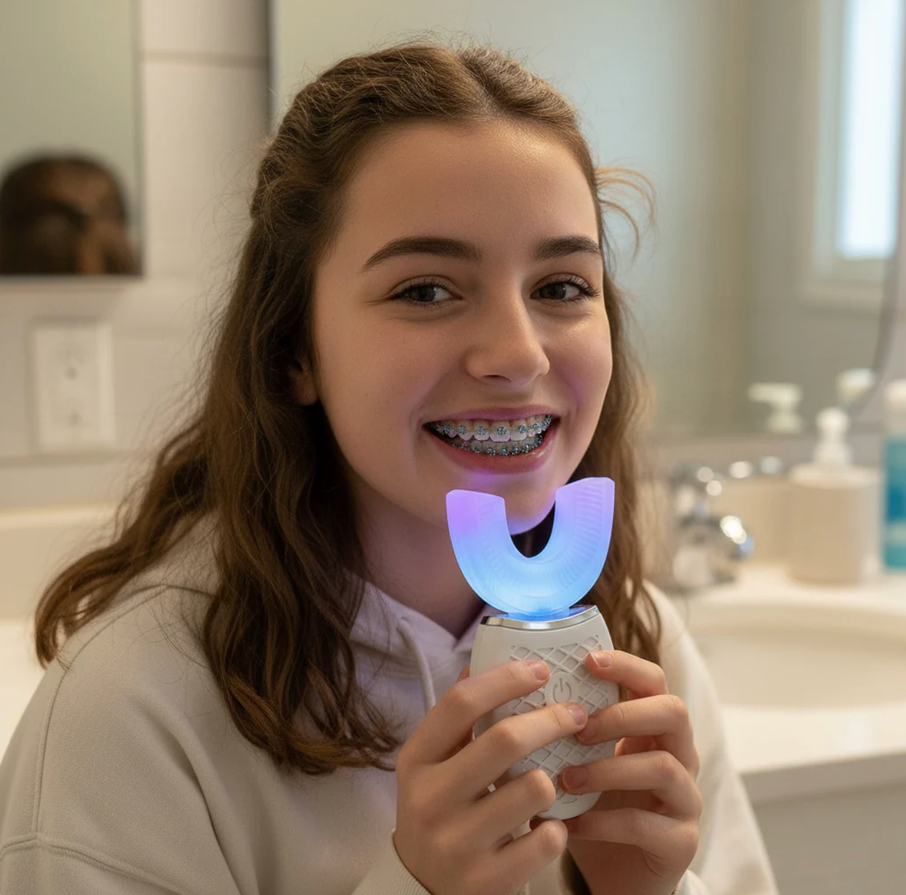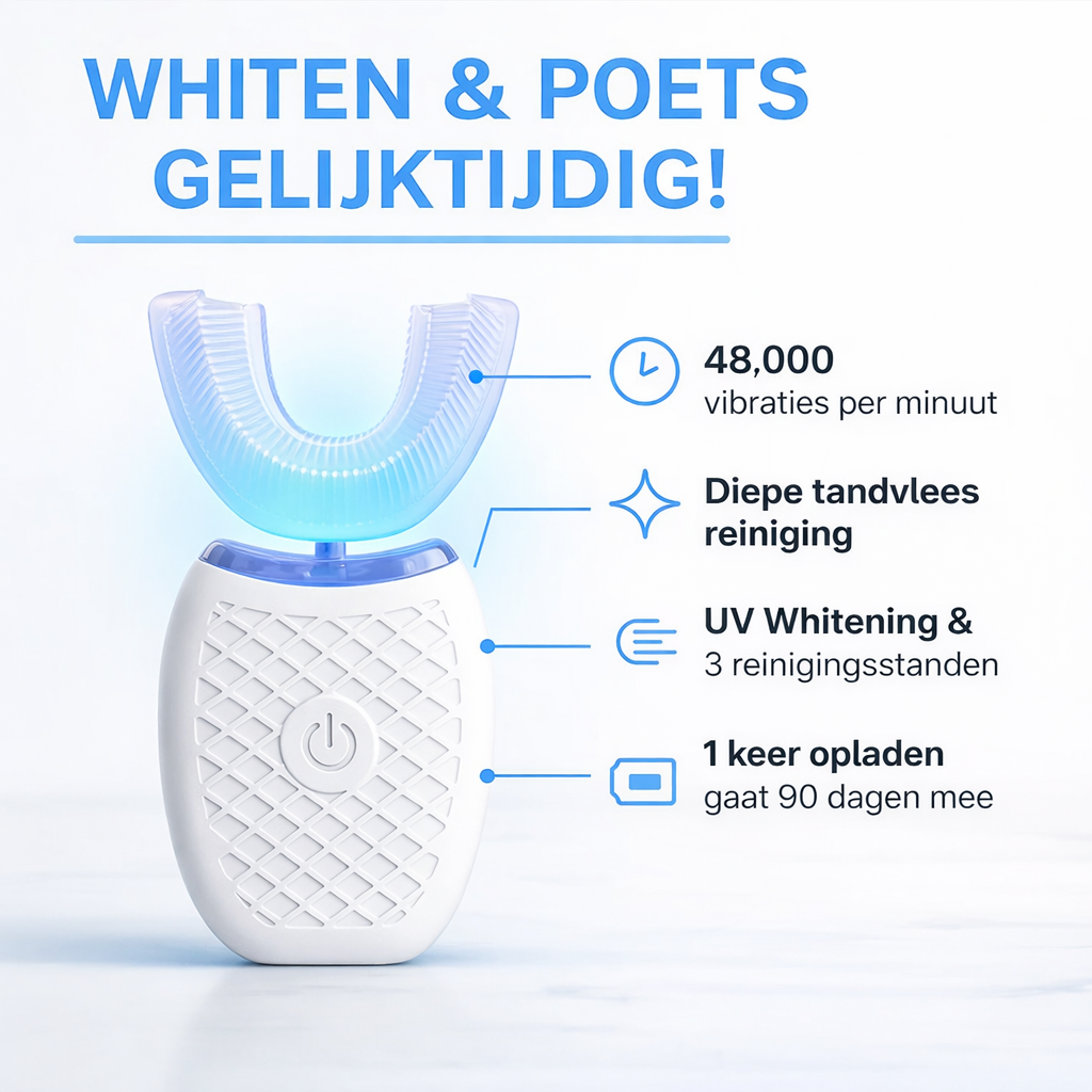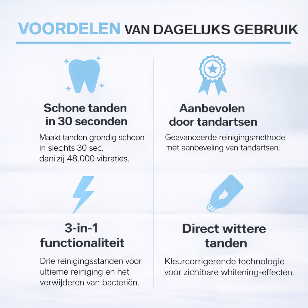 Binnen enkele seconden is het poetsen klaar — schone tanden, gezond tandvlees en geen dagelijkse strijd meer.